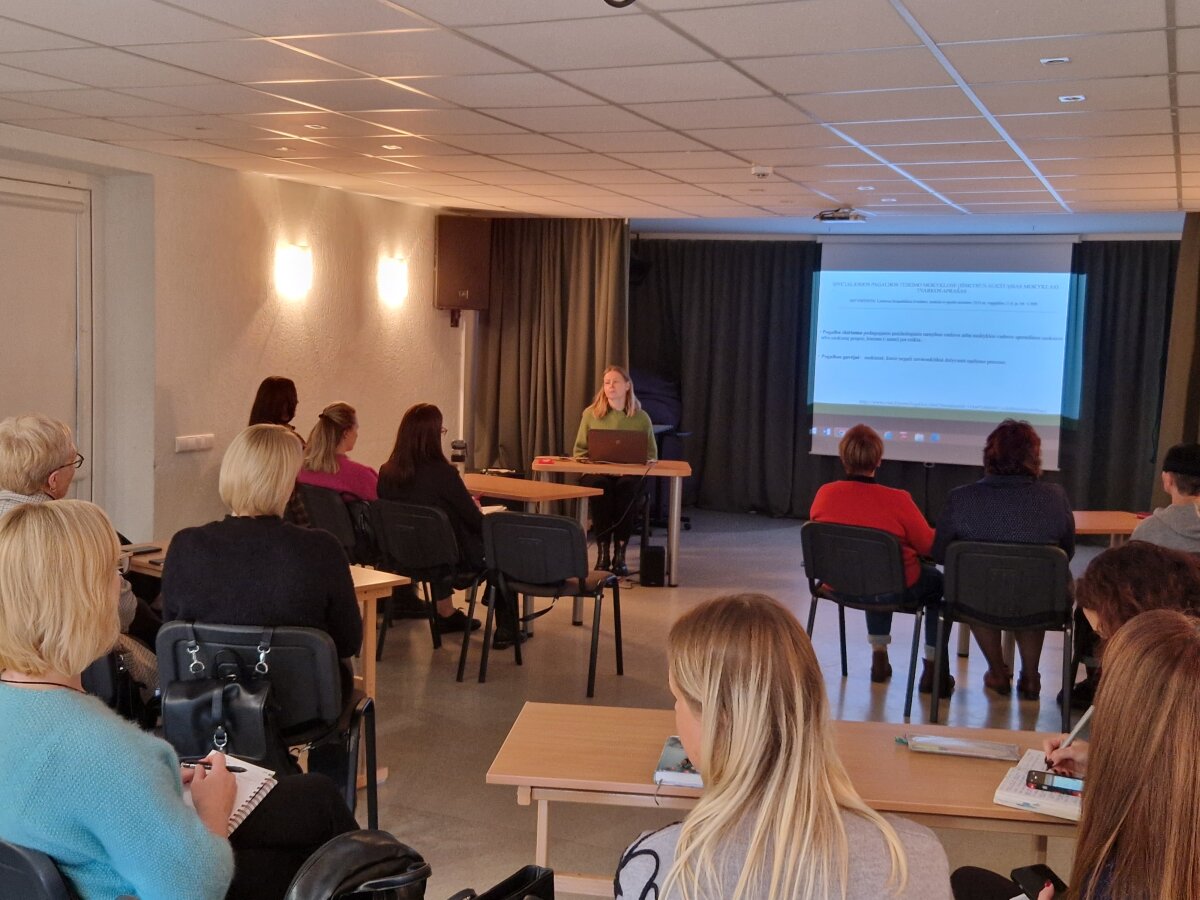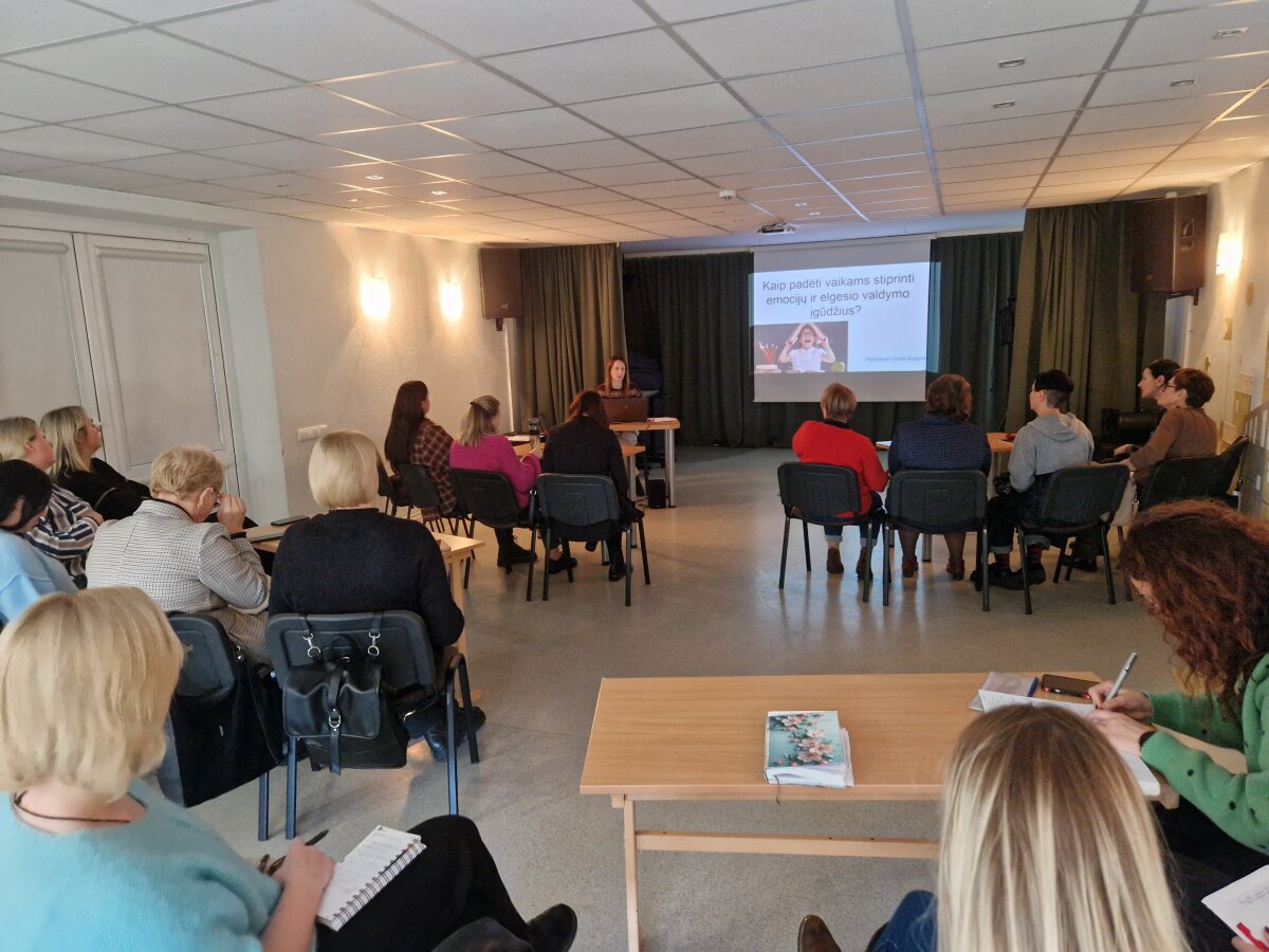 Pirmojoje dalyje specialioji pedagogė Sigita Indriekienė aptarė specialiųjų ugdymosi poreikių turinčių mokinių pažinimo ypatumus bei ugdymo principus. Vėliau psichologė Dovilė Šukienė vedė praktinį užsiėmimą apie emocijų ir elgesio valdymo įgūdžių stiprinimą, pristatydama veiksmingas intervencijas ir bendravimo strategijas.