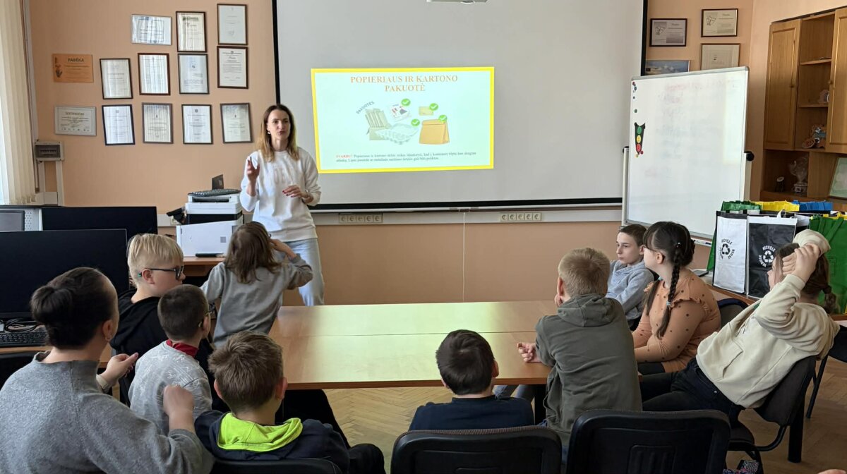 Balandžio 23d. Centro mokinių grupė dalyvavo pamokoje „Balandis – švaros mėnuo. Kas ir kaip tvarko“. Pirmiausia mokiniai sužinojo, kokių skirtingų konteinerių yra mūsų mieste, kokios skirtingos šiukšlės turi būti metamos į juos. Visi kartu nusprendėme, kad miestą reikia „puošti“ ne šiukšlėmis, o gražiais darbais!
